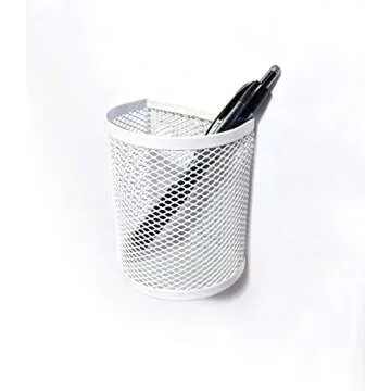 Magnetic Pen Pencil Mesh Metal Basket Holder Container Storage Organizer for Kitchen Refrigerator Fridge Whiteboard Dry Erase File Cabinet Locker (White)(Set of 2)