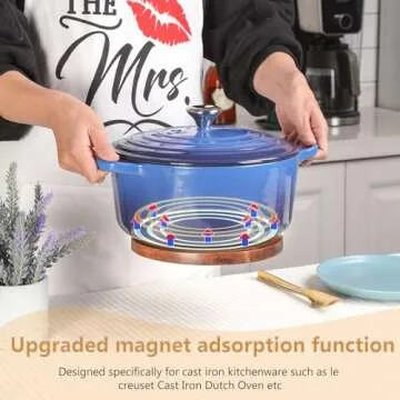 Introducing our Magnetic Wooden Trivet, the perfect kitchen companion for your cast iron cookware! This elegantly crafted product is designed specifically for renowned Dutch ovens from brands like Le Creuset, Staub, and Lodge, as well as any cookware featuring a magnetic metal base. Made from stunning acacia wood, this trivet not only provides a sturdy base for your pots and pans but also enhances your kitchen decor with its natural beauty. Ideal for those...