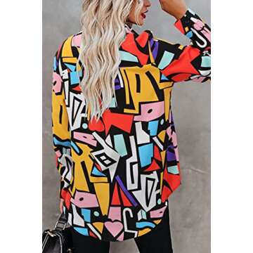 Show moreIntroducing the Magritta Long Sleeve Button Down Shirts for Women, a perfect blend of style, comfort, and versatility. This fashionable cuffed V-neck blouse features a range of eye-catching designs from colorful graffiti and stripes to sleek solid colors and trendy leopard patterns. Made from 100% advanced polyester, this lightweight shirt is designed to keep you feeling cool and comfortable throughout the day. Its durable fabric ensures optimal breathability and a silky soft touch against your skin, making it an ideal choice for every occasion.