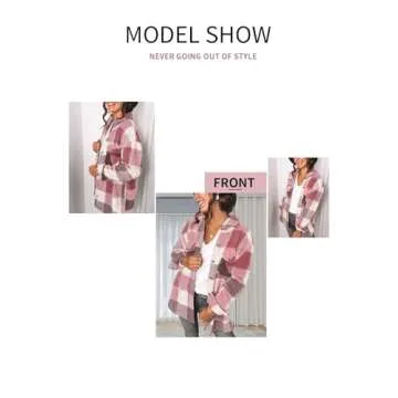 Magritta Plus Size Plaid Blouses for Women Trendy Cozy V Neck Long Sleeve Shacket Jacket Button Up Shirts with Pockets Flannel Coats Square Pink X-Large