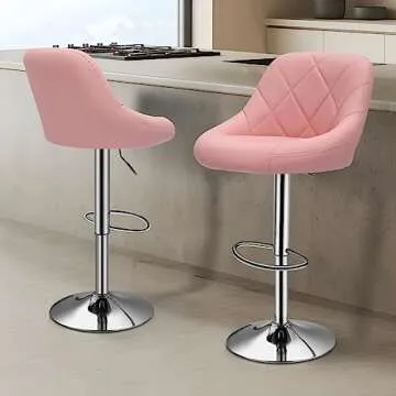 Show moreIntroducing the Magshion Bar Stools Set of 2 in a stylish pink hue, perfect for elevating your kitchen or dining room aesthetic! These modern swivel counter-height bar stools are designed to combine elegance and functionality. Crafted with premium materials, including high-resilience sponge padding wrapped in sleek PU leather, these stools offer superior comfort and durability. Their ergonomic design accommodates up to 250 lbs, ensuring that comfort doesn't come at the expense of sturdiness. The built-in footrest is specifically designed to enhance your sitting posture, making these stools an ideal choice for long meals or gathering.