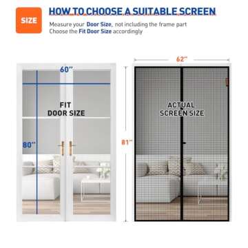 MAGZO Magnetic Screen Door, Fit Door Size 60 x 80 Inch, Actual Screen Size 62" x 81" Reinforced Screen Curtain Middle Opening Sliding Door Screen Mesh, Black