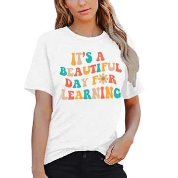 MAIHUN Women Teacher Life Shirt Teacher Gift Short Sleeve Shirts Its a Beautiful Day for Learning T-Shirt White