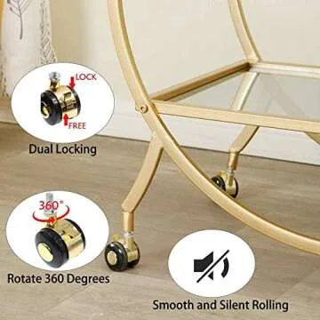 The beautiful decorative metal and mirror finish enhances its aesthetic appeal, making it a stunning centerpiece in your living room, bedroom, or kitchen. This durable design includes four 360° swivel casters with brakes for smooth rolling and stability when in place, allowing you to move it effortlessly without damaging your floors.