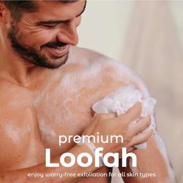 Show moreTransform your bathing routine into a spa-like experience with the MainBasics Bath Shower Loofah Sponge Pouf Body Scrubber Exfoliator, a luxurious set of 3 exquisite shower sponges in an elegant Snow White color. Each loofah is crafted with premium materials, offering a combination of deep exfoliation and gentle cleansing, making it suitable for all skin types. Enjoy the comforting feel of our finely woven mesh, designed specifically to lift away dirt and dead skin cells without causing irritation. With this loofah set, say goodbye to harsh scrubs and hello to soft, radiant skin!