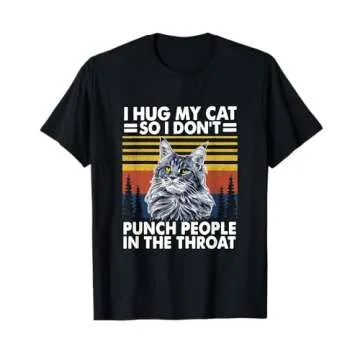 maine coon cat t-shirt i hug my cat so i don't punch people T-Shirt
