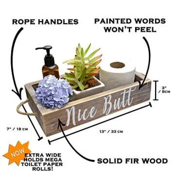 Unlike mass-produced alternatives that rely on MDF with unreliable vinyl attachments, the **MAINEVENT Hello Sweet Cheeks Bathroom Decor Box** is crafted from high-quality solid wood, ensuring longevity and aesthetic appeal. Its unique design features humorous prints, making it a standout choice over more generic decor boxes that lack character. Customers have frequently praised its ability to withstand bathroom humidity better than those of competitors, making it a wise investment in both functionality and style.