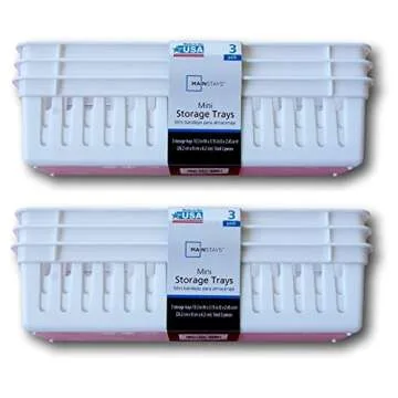 Mainstays Slim Plastic Storage Trays Baskets in White- Set of 6