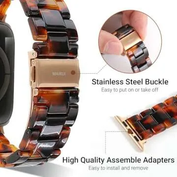 Show moreDiscover the perfect blend of style and functionality with the MAIRUI Resin Watch Band, specially designed for Apple Watch users. This versatile band is compatible with a wide range of Apple Watch models, including 41mm, 40mm, and 38mm versions from Series 1 to Series 9, along with SE and Ultra models. Crafted from premium lightweight resin, the band features a unique tortoise shell pattern that exudes elegance while ensuring resilience against everyday wear and tear.