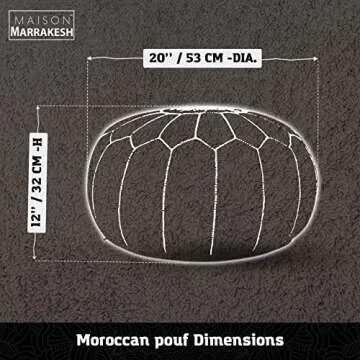 Maison Marrakech | Premium Beautiful Handmade Real Moroccan Tan Brown Leather Footstool Pouf from Marrakech | Colour Tan Brown with White Stitching | Delivered unstuffed 22.5 x 12.5 inches