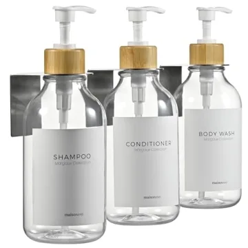 Transform your bathroom into a luxurious spa-like retreat with this innovative shower soap dispenser set from MaisoNovo. Each pack includes three extra-thick PET plastic clear bottles, perfectly sized to hold 16.9 fl oz (500ml) of your favorite shower essentials. Accompanied by three durable wall-mount brackets with adhesive backing, installation is a breeze! The included six waterproof margaux labels—which feature designs for hand soap, dish soap, lotion, shampoo, conditioner, and body wash—allow for...