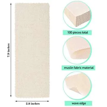 Show more Introducing our premium package of 100 Muslin Epilating Strips, designed specifically for those who love to maintain their grooming routine effortlessly! Each strip measures approximately 2.8 x 7.9 inches, making them the ideal size for various parts of your body, including your face, legs, arms, back, and underarms. This versatile product allows you to cut the strips into smaller sizes if necessary, ensuring precision in your hair removal process.