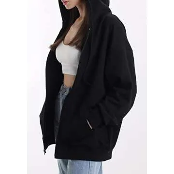 MAJECLO Women's Comfy Lightweight Oversized Zip Up Hoodie Sweatshirt (X-Large, Oversized_Black)