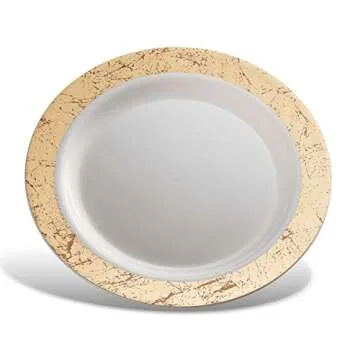 When looking for disposable dinnerware, not all options are created equal. Many plates lack both aesthetic appeal and functionality. Our Majestic Party Plates stand out due to their luxurious design, sturdy construction, and elegant presentation. Unlike generic plastic plates that can warp or crack, our high-quality plates retain their shape and luster, making them a superior choice for upscale events. Customers will appreciate the blend of beauty and practicality, ensuring your event looks fantastic without the extensive cleanup.