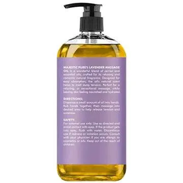 MAJESTIC PURE Lavender Massage Oil - Hydrating, Calming, Warming, Relaxing & Rejuvenating Body Oil - Premium Grade, Made with Natural Oils - Skin Care for Men and Women - Made in USA - 8 fl oz