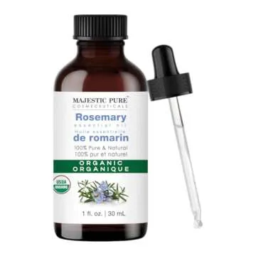Majestic Pure Organic Rosemary Essential Oil - 100% Pure & Premium Rosemary Oil for Hair Growth, Skin, Face, Aromatherapy & Diffuser - 1 fl oz | Perfect Organic Rosemary Oil for Hair Growth