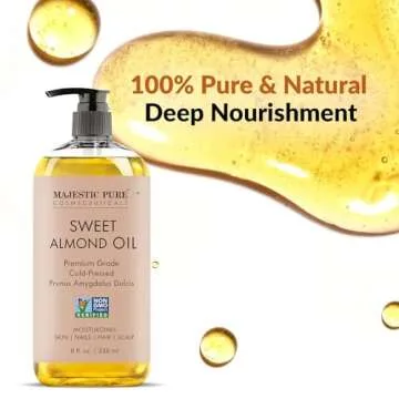 Majestic Pure Sweet Almond Oil | 100% Pure & Natural Cold Pressed Oil for Skin, Face, Nails, Hair, Scalp & Massage | 8 fl oz
