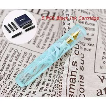 MAJOHN Wancai Mini Fountain Pen Ink Transparent Pocket-Size Travel Short Pen Fine Nib 0.5mm Writing Gift Pen with 6 PCS Black Ink Cartridges - Mint Green Pattern