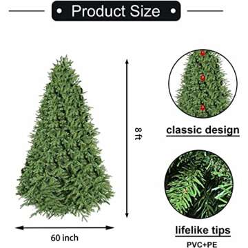 MAKEATREE 8-FT Artificial Christmas Tree with 2831 Tips, Unlit Hinged Spruce Xmas Tree for Indoor Outdoor, Green