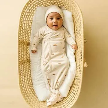 MakeMake Organics GOTS Organic Cotton Kimono Knotted Blanket Tie Sack Swaddle Hat Set Mittens Baby Boys Girls (Sunshine, Newborn)