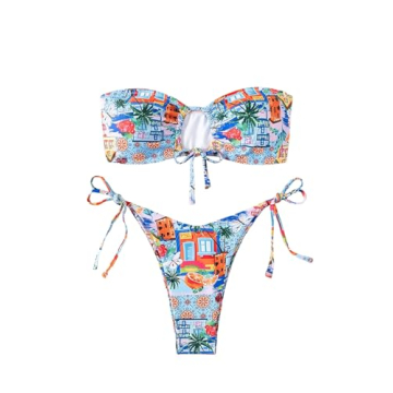 Show more Introducing the MakeMeChic Women's 2 Piece Bandeau Swimsuit Floral Cut Out Bikini Set, a stunning addition to your summer wardrobe that perfectly complements every beachside adventure. Crafted from a high-quality fabric that boasts excellent stretch, this swimsuit is designed for both comfort and style. The set features a chic strapless bandeau top with a stylish knot detail and playful cut-out accents, perfectly accentuating your figure. Coupled with high leg bikini bottoms, this ensemble not only enhances your silhouette but also provides a trendy and flattering look. Adorned with a beautiful ditsy floral print, it embodies the essence of tropical vibes and makes you stand out whether you're lounging by the pool or soaking up the sun on a sandy beach. Get ready to turn heads this season!