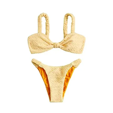 Show moreIntroducing the MakeMeChic Women's 2 Piece Bathing Suits Knot High Cut Bikini Set in vibrant yellow! This stunning swimsuit is designed to turn heads while offering unparalleled comfort and durability for all your summer escapades. From lounging poolside to diving into ocean waves, this bikini set is your perfect companion, crafted with high-quality materials that promise to withstand the rigors of sandy beaches and sun-filled days.