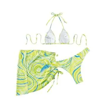 Show moreStep into the summer sun with the MakeMeChic Women's 3packs Allover Print Bikini Set and Drawstring Side Cover Up Skirt. This stunning beachwear ensemble is expertly crafted to offer a chic and stylish look while providing the perfect fit and comfort you need for a day by the pool or a beach getaway. Featuring vibrant allover prints that capture the essence of summer fun, this set includes not just a bikini, but also a trendy cover-up skirt that you can easily slip on or off, adding versatility to your beach fashion. The eye-catching green hue is perfect for making a statement, while the flattering designs ensure you'll look and feel fabulous.