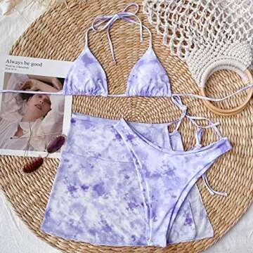 MakeMeChic Women's 3packs Tie Dye Triangle Bikini Swimsuit and Beach Skirt Purple S