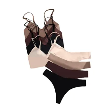 Show moreIntroducing the MakeMeChic Women's 4 Pack Seamless No Show Bra and Panty Set, the ultimate fusion of comfort and style designed specifically for the modern woman. This exquisite matching lingerie set features a collection of 4 solid v-neck bralettes and low rise thongs, meticulously crafted from an incredibly soft and stretchy fabric that provides an impeccable fit while embracing your unique silhouette. Imagine a set that caters to your everyday needs, whether you're lounging at home, enjoying a peaceful night's sleep, or simply seeking relaxed elegance.