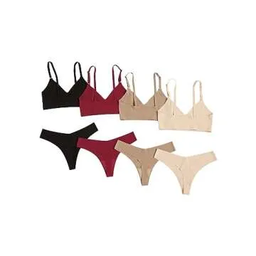 MakeMeChic Women's 4 Pack Seamless No Show Bra and Panty Set Matching Lingerie Set
