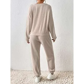 Feature: long sleeve, drop shoulder, v neck, t-shirt, sweatpants, rib-knit, 2 piece set