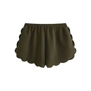 Plain hot pants,Scalloped trim design, elastic waist, solid color, NO pocket