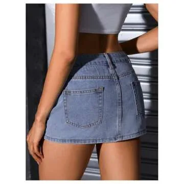 MakeMeChic Women's Casual High Waist Bodycon Jean Skirt Button Zipper Fly Mini Denim Skirt Blue L
