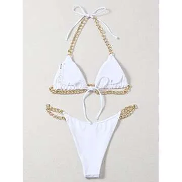 MakeMeChic Women's Chain Linked Triangle Bikini Swimsuit High Cut Bathing Suit White S