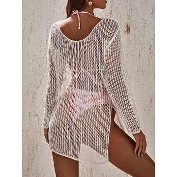 Introducing the MakeMeChic Women's Crochet Cover Up, your go-to long sleeve knitted beach swimwear cover-up that combines chic style and exceptional comfort! This adorable coverup is crafted from a breathable knit material, making it perfect for those sunny days at the beach or leisurely picnics in the park. The versatility of this garment allows it to be easily layered over any outfit, adding an elegant touch whether you're dressing down for casual outings or dressing up for evenings out....