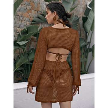 Show moreThe MakeMeChic Women's Crochet Cover Up is an essential addition to your swimwear collection, offering a perfect blend of style and comfort. Crafted from lightweight, breathable knitted fabric, this gorgeous long sleeve cover up dress in a rich brown hue effortlessly enhances your beachside look. With its delicate crochet details, this versatile piece is designed to transition seamlessly from sandy shores to seaside cafes, making it the ideal choice for fashion-forward individuals. Whether you're lounging by the pool or strolling along the beach, this cover up provides just the right amount of coverage while radiating chic elegance.