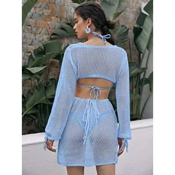 Introducing the MakeMeChic Women's Crochet Cover Up, the ultimate beachwear essential designed for style and comfort. This stunning long sleeve knitted swim cover-up dress in a delightful light blue color effortlessly combines fashion with functionality. Crafted with soft and breathable materials, it ensures you stay cool and chic whether you're lounging poolside or enjoying a sunny day at the beach. The intricate crochet design not only adds a touch of elegance but also showcases your favorite...