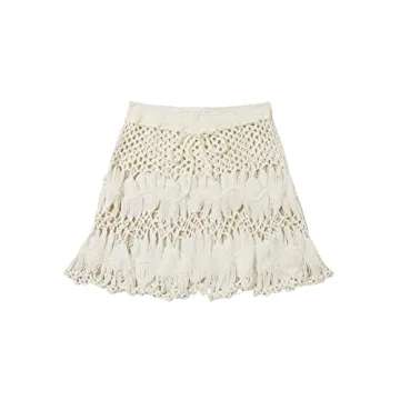 Show more Introducing the MakeMeChic Women's Crochet Drawstring Knitted High Waisted Swimsuit Mini Cover Up Beach Skirt in a stunning Beige hue, the perfect blend of style and comfort for your summer adventures! Crafted with a breathable and stretchy fabric, this cover-up ensures you stay cool and chic while lounging by the pool or strolling along the beach. Its unique crochet design, featuring hollow outs and charming tiny seashell decor, perfectly encapsulates the boho spirit. The drawstring front allows for a customizable fit, making it a versatile addition to your swimwear collection. This cover-up isn't just about looks; it hugs your body in all the right places, enhancing your silhouette while providing essential coverage. Expect compliments when you wear this effortlessly fashionable piece, destined to elevate any beach look.