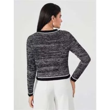 MakeMeChic Women's Cropped Cardigan Pearl Button Down Knit Open Front Sweaters Outerwear Apricot L C-Black Large