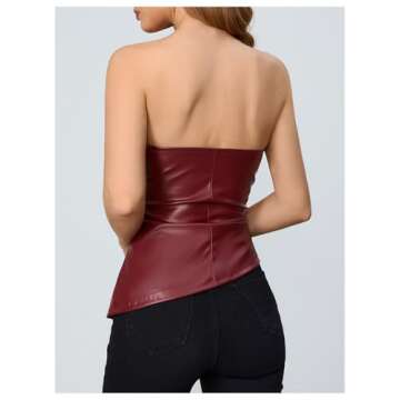 Show moreStep into the spotlight with the stunning MakeMeChic Women's Faux Leather Strapless Tube Top, designed for those who appreciate style, sophistication, and comfort. Made of medium-stretch pu leather, this sleek top features a flattering asymmetrical cut that accentuates your figure while ensuring an effortlessly chic appearance. With its unique ruched design, you'll turn heads at any event, standing out for all the right reasons. Available in a bold burgundy color that guarantees to make a statement, this strapless bandeau top will become a staple in your wardrobe for any fun night out or special occasion. Whether you're dancing the night away or enjoying a cozy dinner date, this top promises versatility and elegance all in one sleek package.