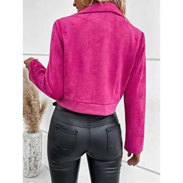 Show moreElevate your style with the MakeMeChic Women's Faux Suede Jacket, expertly designed for the modern woman. This stunning hot pink moto biker jacket combines fashion and functionality, making it the perfect addition to your wardrobe. Featuring a soft, slightly stretchy fabric that hugs your body in all the right places, this jacket is both comfortable and chic. With long sleeves, a sophisticated lapel collar, and a convenient zip front, you can easily transition from day to night while looking effortlessly stylish.