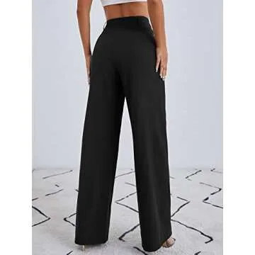 MakeMeChic Women's High Waisted Pockets Work Office Palazzo Wide Leg Pants Black A L