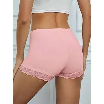 MakeMeChic Women's Lace Trim Seamless Biker Shorts Short Leggings Undershorts Light Pink Tall M