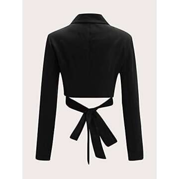 Show moreThe MakeMeChic Women's Lapel Collar Knot Hem Long Sleeve Wrap Blazer Crop Top is the perfect blend of sophistication and chic style. Tailored for the modern woman, this black blazer crop top boasts a unique knot hem design that adds a playful twist to a classic silhouette. Made with high-quality materials, it ensures comfort and durability, making it an essential addition to any wardrobe. The stylish lapel collar adds a touch of elegance, while the long sleeves provide just the right amount of coverage, making it suitable for various occasions. Whether dressed up for the office or down for a casual outing, this blazer effortlessly enhances your look, ensuring you stand out with confidence and grace.