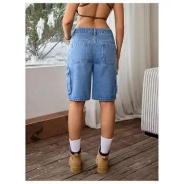 MakeMeChic Women's Low Waist Denim Cargo Shorts Flap Pocket Baggy Y2K Bermuda Jean Shorts