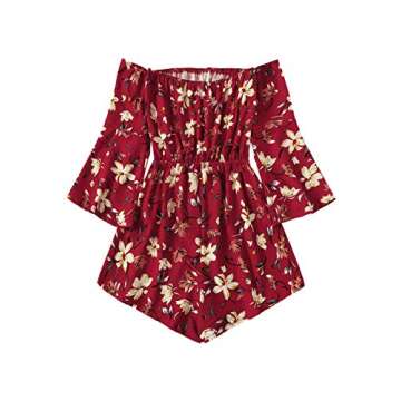 MakeMeChic Women's Off Shoulder Tropical Floral Rompers Summer Outfits Burgundy Flower M