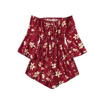 Show moreStep into summer with the stunning MakeMeChic Women's Off Shoulder Tropical Floral Rompers, designed to make you feel fabulous and confident, no matter the occasion. This vibrant romper showcases a breathtaking burgundy floral pattern that embraces the essence of summer elegance. The off-shoulder design highlights your shoulders beautifully, creating an alluring silhouette that’s both fashionable and comfortable. Made from high-quality, breathable fabric, this romper promises not only style but also comfort, making it the perfect choice for sunny days and warm evenings.