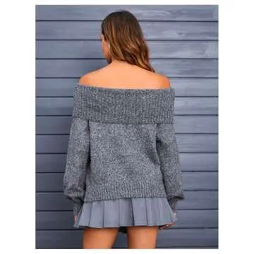 MakeMeChic Women's Off The Shoulder Sweater Oversized Long Sleeve Off Shoulder Sweaters Tops Dark Grey Large