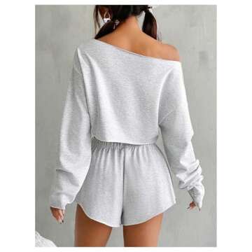 MakeMeChic Women's Pajama Set Long Sleeve Crop Top Shorts Loungewear Tracksuit Grey Small