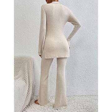 Show more Introducing the MakeMeChic Women's Pajama Set Loungewear Set, your go-to choice for cozy comfort and stylish versatility. This **two-piece outfit** features a long sleeve top delicately designed with a **rib knit** texture, ensuring not only a fabulous fit but also a soft touch against your skin. The flare leg pants add a trendy twist to your loungewear essentials, making this set perfect for various occasions, from casual outings to tranquil evenings at home. Available in a beautiful apricot hue, this set effortlessly combines comfort and style, enhancing your wardrobe with a touch of elegance.